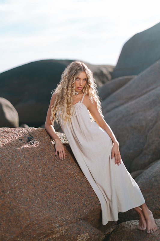 VESTIDO DE LINHO ÂMBAR NATURAL